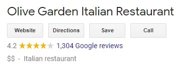 Yet – MANY people LOVE Olive Garden. For example, here’s the review snippet for a local Olive Garden via Google – 1300+ reviews at a score of 4.2. That’s really solid!