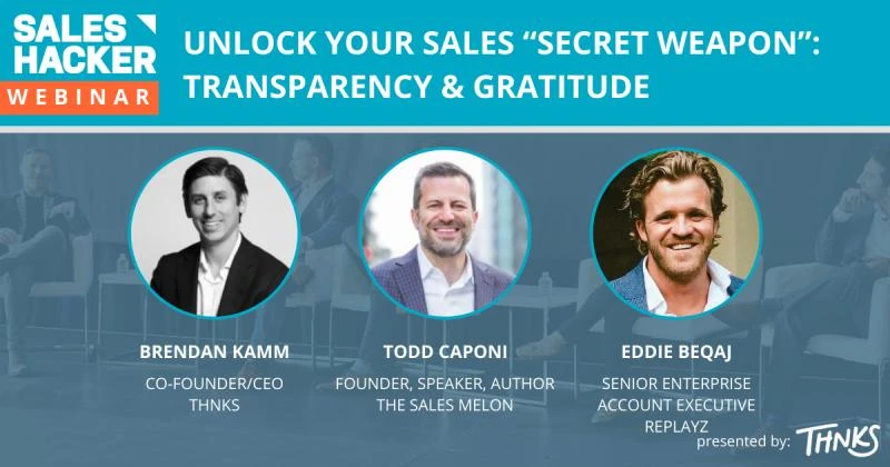Tuesday, June 2nd: Sales Hacker Webinar: Unlock Your Sales “Secret Weapon”: Transparency & Gratitude