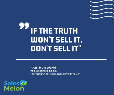 In 1919, author Arthur Dunn was quoted as saying, “If the truth won’t sell it, don’t sell it.”