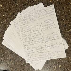 Here it is. There are some parts that were very difficult to read, some sentences cut off, and in some cases, sentences were crossed out (marked as such below). But it’s fascinating…