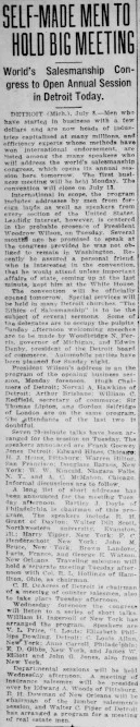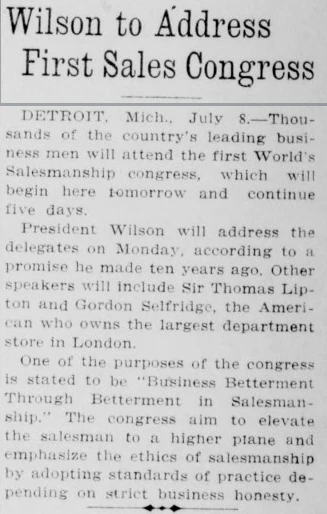 104 years ago today, July 9th, 1916, the World Salesmanship Congress kicked off in Detroit.