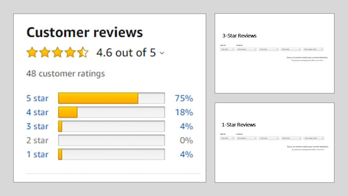 With Amazon’s change, because people can leave a star-rating without leaving a review, those negative reviews don’t help buyers in their decision journey. A rating without context is meaningless to the buying brain. We read negative reviews to relate; was the waiter who provided terrible service at a restaurant just having a bad night? Was the vacuum’s unusually long cord difficult for the person living in the small apartment to manage, but potentially great for you in a larger place?